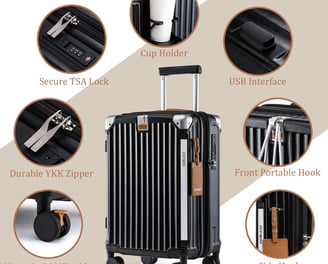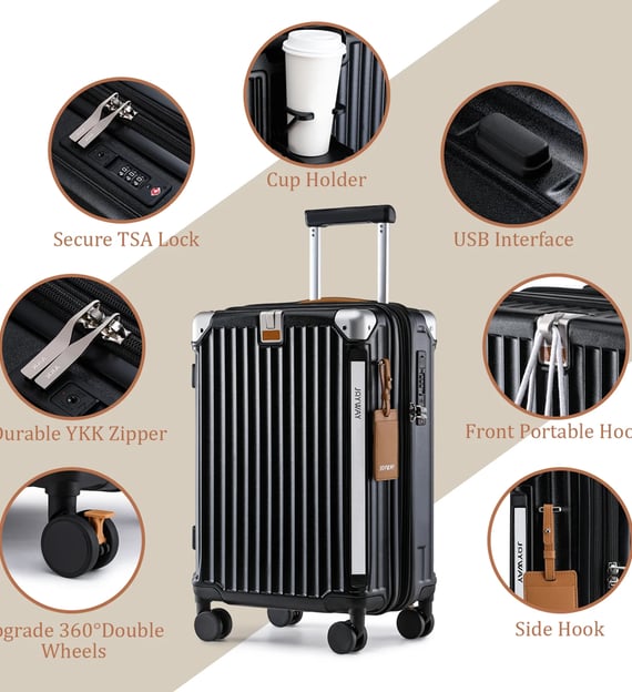 The Joyway 20-inch Expandable Carry-On packs a surprising punch for its price. This sleek hardshell suitcase offers modern conveniences like a built-in cup holder and USB charging port usually found in pricier luggage. It’s lightweight yet spacious, with an expandable design that adds 20% more room for those extra outfits or souvenirsamazon.com. The 360° double-spinner wheels glide effortlessly, making airport navigation a breeze, and a TSA-approved lock adds peace of mind. Overall, the Joyway carry-on is a friendly travel companion for business travelers, digital nomads, and frequent flyers who crave handy features and reliability without breaking the bank. In a hurry?