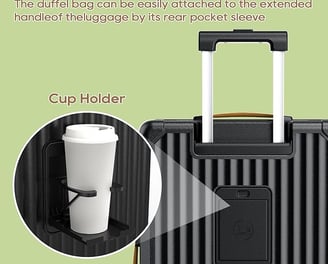 Charge on the go with built-in USB & USB-C ports (just add your power bank). The rear cup holder is a traveler favorite—keep your coffee steady while checking in.