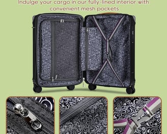 Feature Details Size 21.6” x 13.8” x 7.9” – carry-on compliant